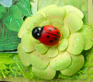Green and Black papers are from SU. I used die cuts, for my images and added buttons to hold my folds on the card.