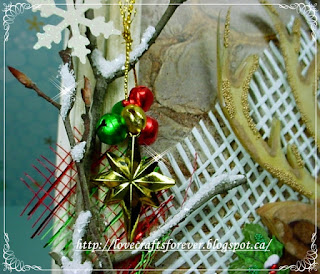 This dry branches we picked with Kids on the back yard. I glue them with Hot Gun, cover with Snow writer and Diamond Dust is everywhere .